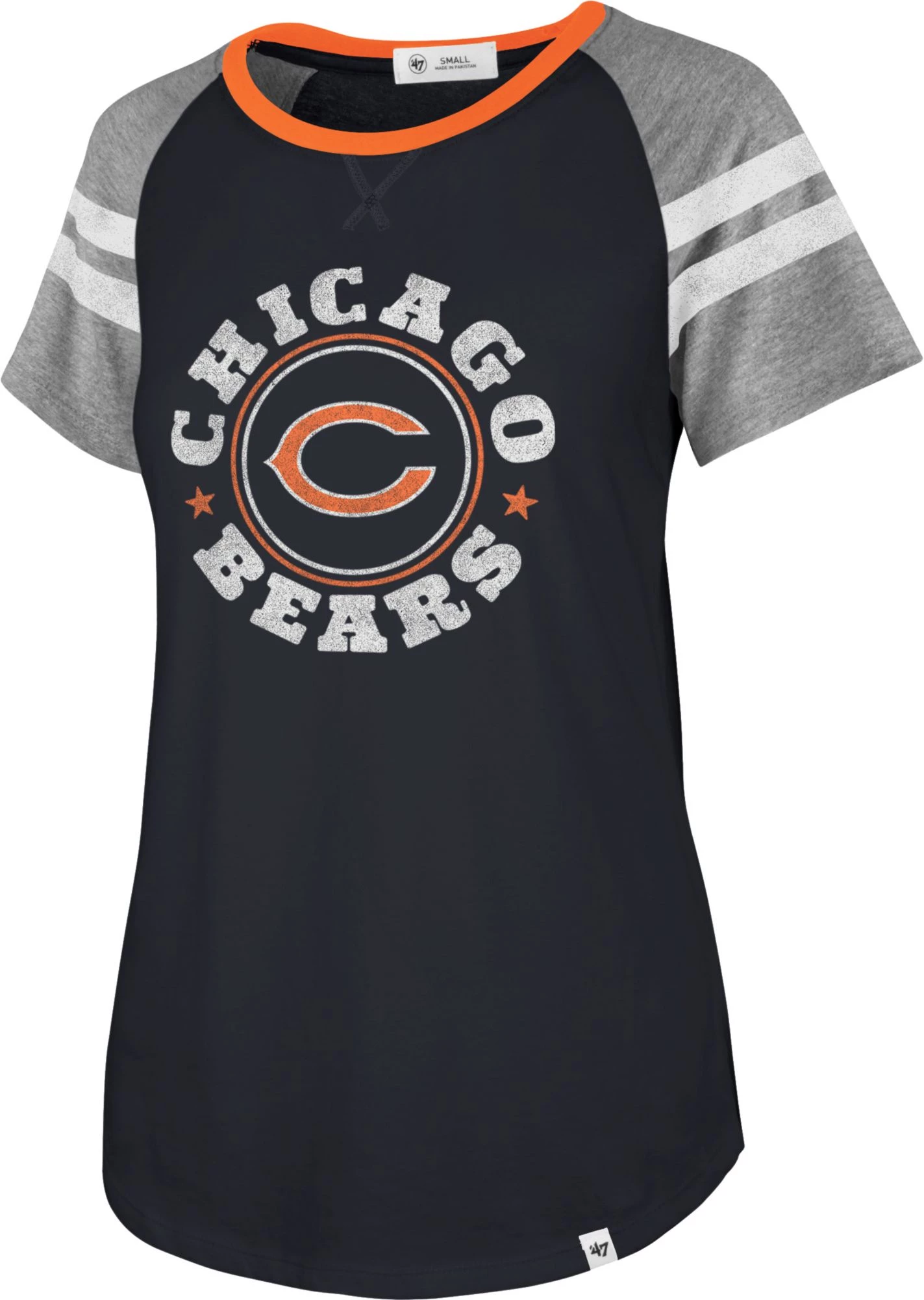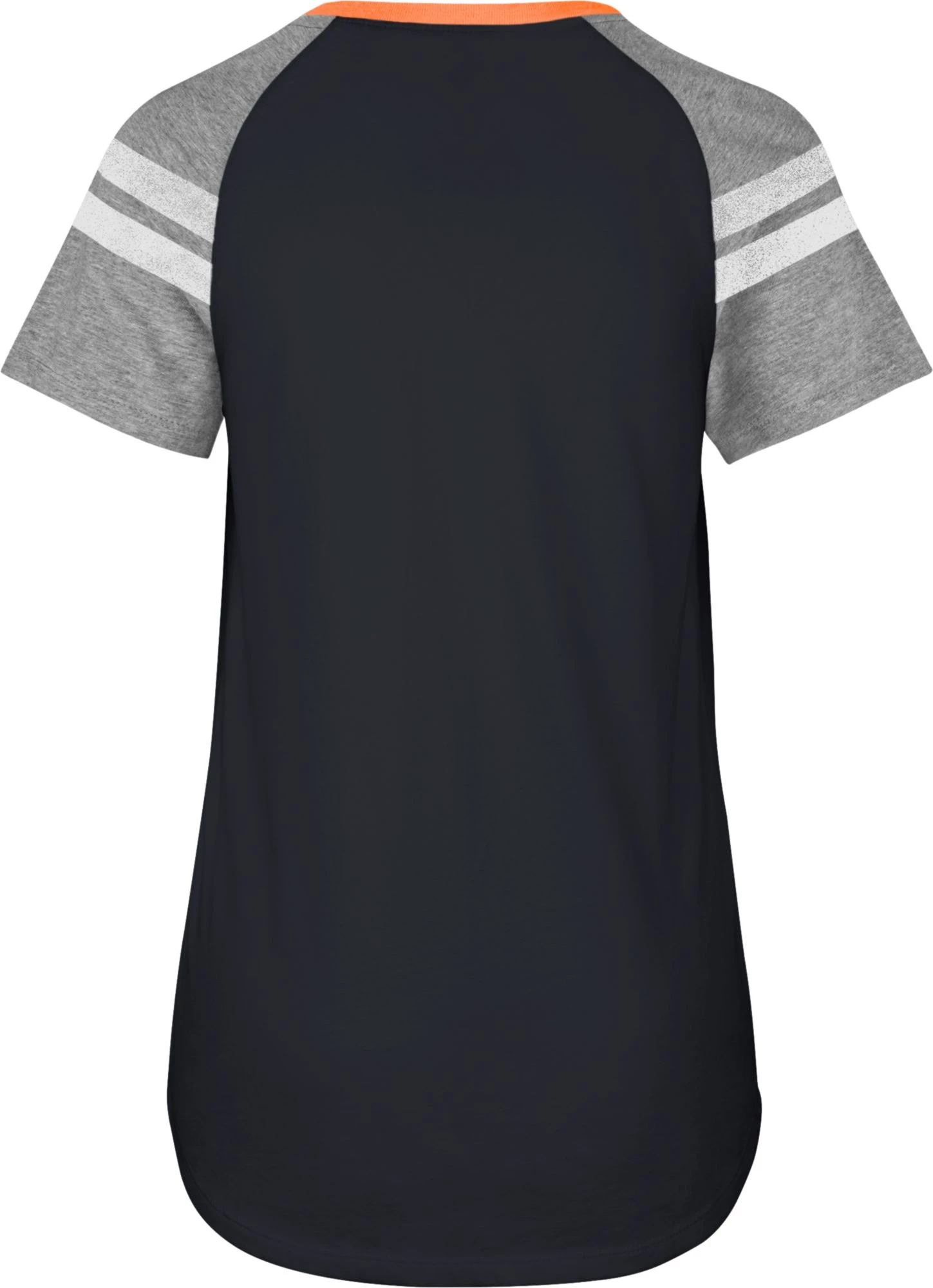 - Feminine-fit, short-sleeve raglan